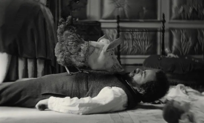 To elevate the Frankenstein-esque nature of Willem Dafoe’s scientist, Yorgos Lanthimos and his team shot footage of multiple animals and then blended them in post, emphasizing the stitches and staples connecting the creatures together. Beyond the pig/chicken above, the film is dotted with a goose/bulldog and a duck/goat, among other inventive creations.